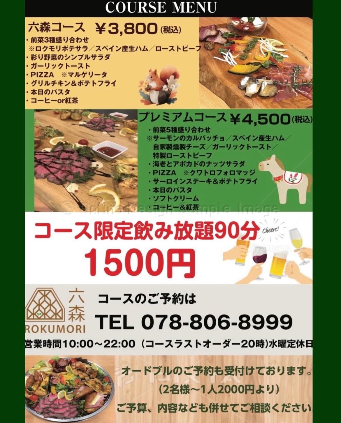 カフェからのお知らせ お得な情報! 2025年12月1日 by ROKUMORI 2月末まではプレミアムコースがとってもお得! 通常5500円のコースが2026年2月末までは4500円とお得になっております。 プラス1500円で90分飲み放題に! 忘年会や新年会、ご家族との集まりなど年末年始は何かと集まる機会も多いです。 ぜひお得に六森で初コースを食べてみませんか?